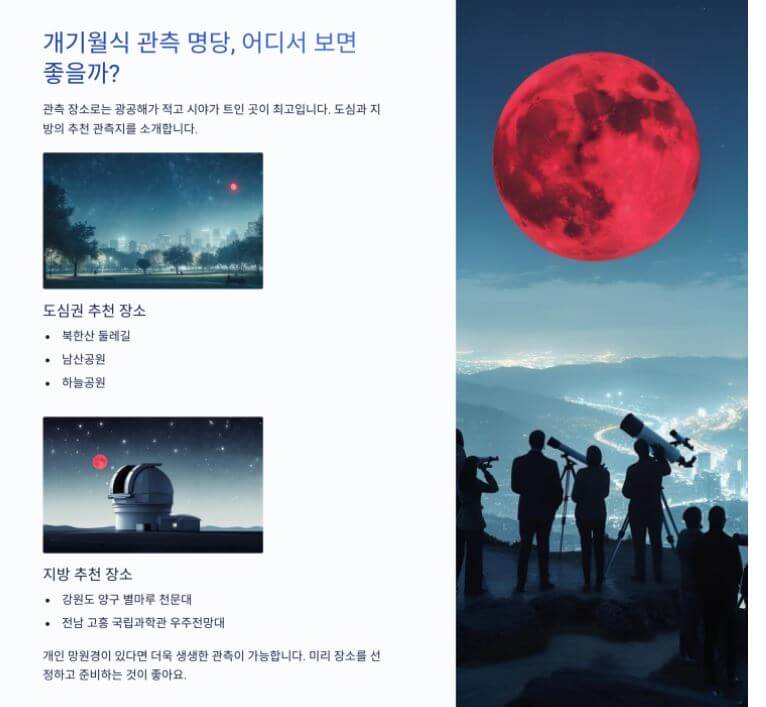 2025년 하늘을 수놓을 개기월식 일정과 관측 시간, 볼 수 있는 지역, 그리고 제대로 즐기는 관측 팁을 알려드립니다. 천문 애호가뿐 아니라 일반인도 쉽게 준비할 수 있도록 정리했어요.